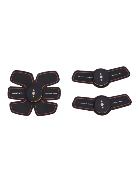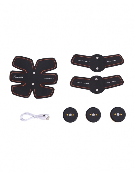 - Fournis : 3 électro stimulateurs + 1 gel abdomen + 2 gels bras +1 câble de recharge+ 1 manuel d'utilisation.