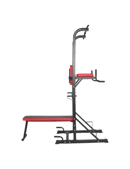 - MULTIFONCTIONEL :La chaise de romaine, aussi s’apelle le power tower, contient quelques parties, le barre de traction,le barre pour les dips,etc. Grâce au support pour haltère et banc pliable, vous pouvez faire les haltères. Avec les deux poignées au dessous de la station, vous pouvez faire des pompes La station vous offre la possibilité de travailler les parties hautes du corps, la poitrine, les épaules, les triceps et les abdominaux.